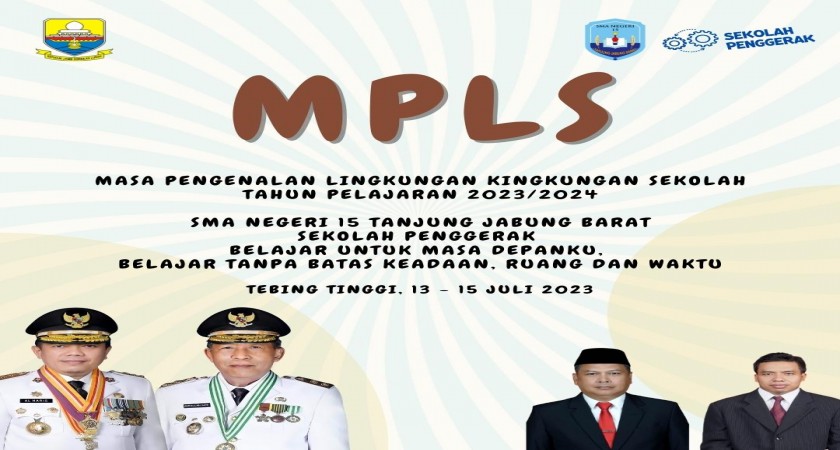 Diberitahukan kepada seluruh peserta didik baru SMA Negeri 15 Tanjung Jabung Barat tahun pelajaran 2023/2024 bahwa Masa Pengenalan Lingkungan Sekolah (MPLS) akan dilaksanakan pada hari Kamis-Sabtu, 13-15 Juli 2023 di SMA Negeri 15 Tanjung Jabung Barat.