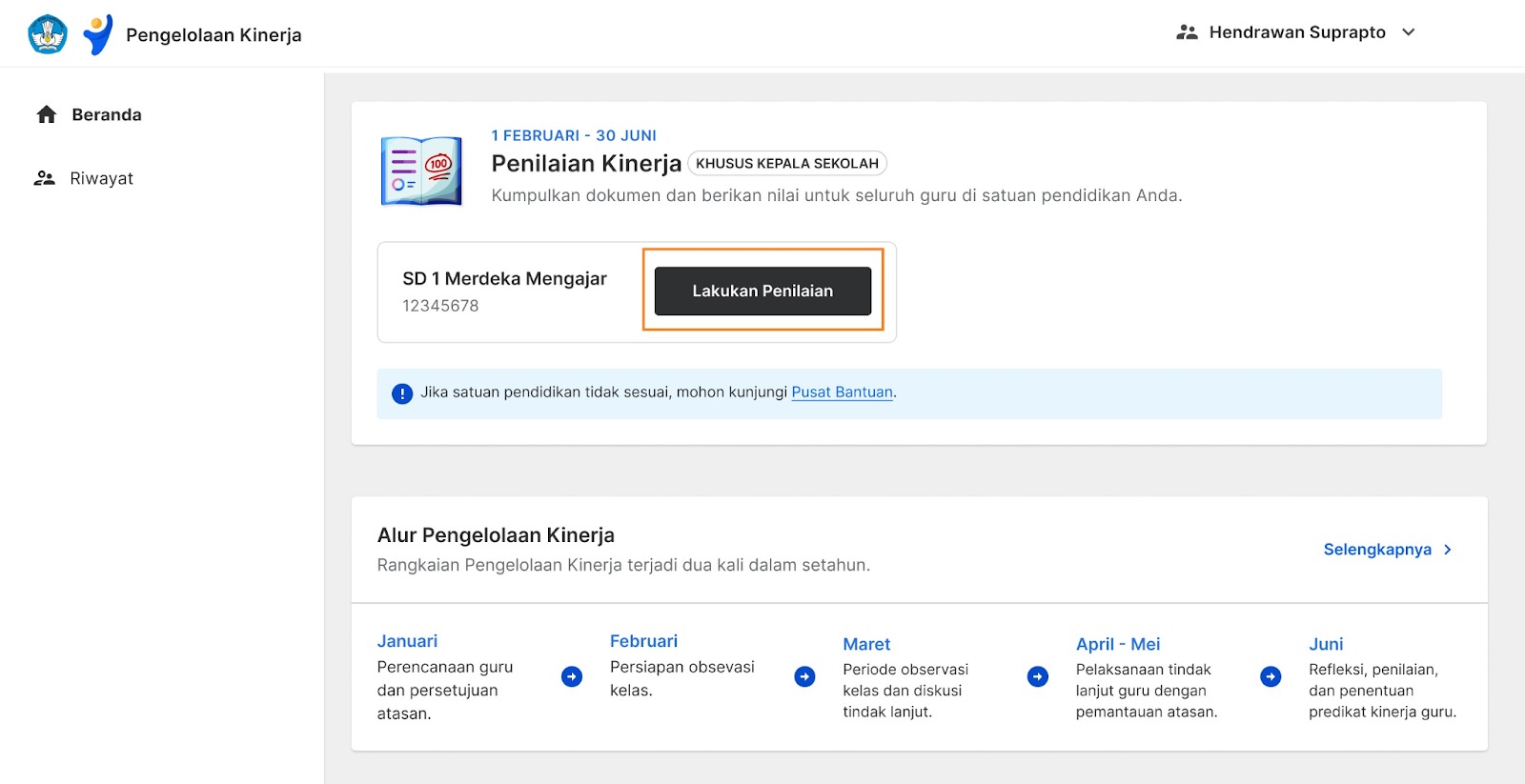 3. Klik ‘Lakukan Penilaian’ untuk masuk ke halaman Penilaian Kinerja.