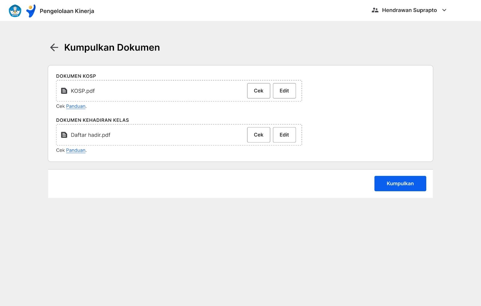 - Klik ‘Kumpulkan’ untuk Anda dapat memulai mengunggah bukti dukung melalui halaman Kumpulkan Dokumen
