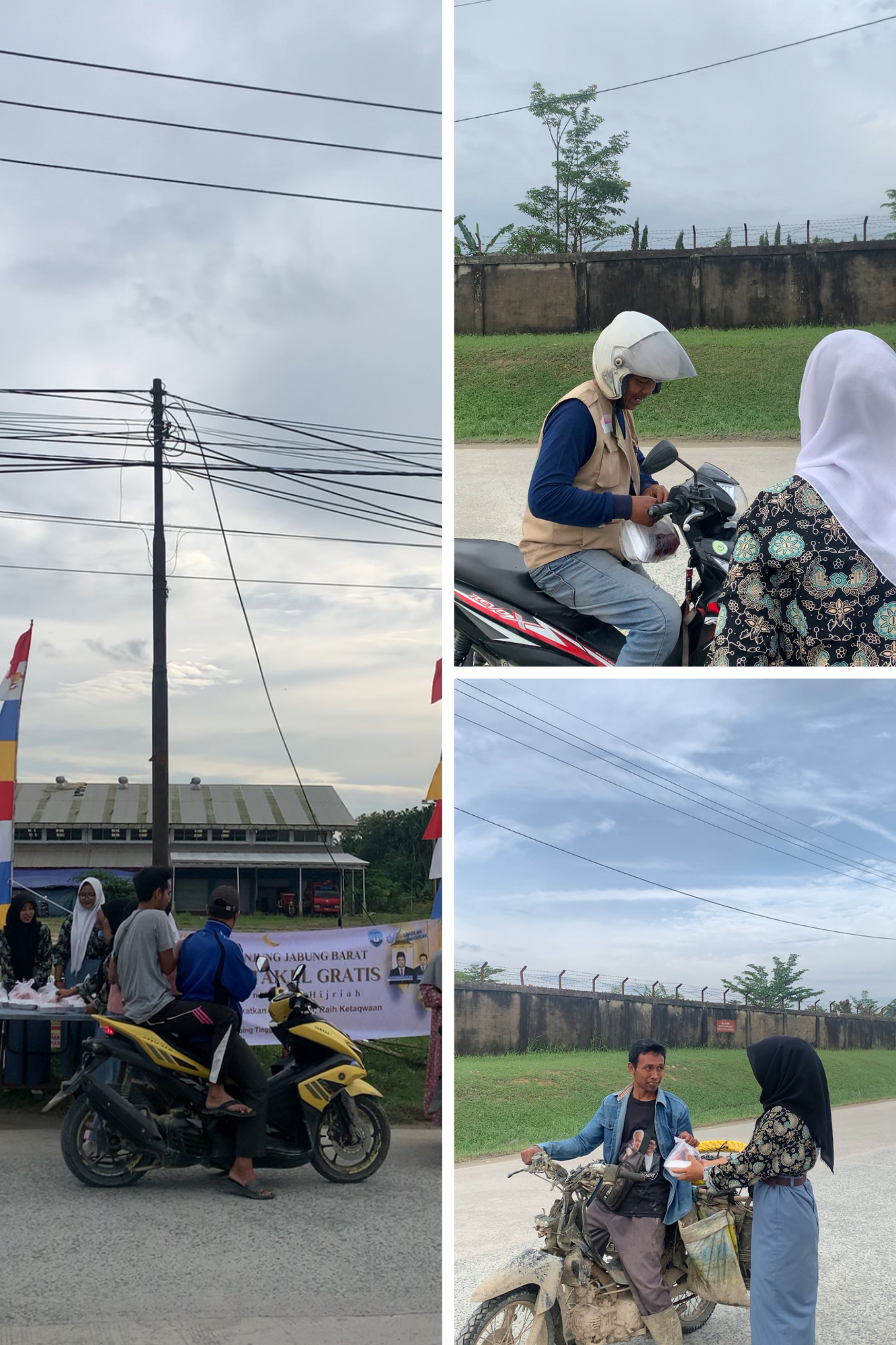 Didampingi oleh guru-guru hebat, Ibu Munawarah, S.Ag., Bapak Dicki Febrian, S.Pd., Gr., Ibu Diana Recelly, S.Pd., Gr., dan Ibu Wahidah Fitriyanti, S.Si. serta tenaga administrasi sekolah, Risma Witri, para pengurus OSIS dengan semangat menyapa satu per satu pengendara yang lewat. Mulai dari bapak-bapak tukang ojek, ibu-ibu belanja, sampai anak-anak kecil yang dibonceng orang tuanya, semua dapet jatah takjil. Senyumnya? Auto bikin adem!