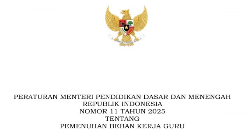 Selengkapnya Peraturan Menteri Pendidikan Dasar dan Menengah Nomor 11 Tahun 2025 tentang Pemenuhan Beban Kerja Guru dapat DIBACA DAN DIUNDUH DI SINI